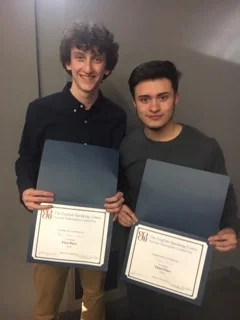 On Wednesday, February 26, 2020 Theatre Dept. senior Rowan Trowbridge-Wheeler and junior Ivan Lazaro competed in the annual English Speaking Union CT Shakespeare Competition held in Greenwich, CT. Ivan Lazaro won first place in the competition and will go on to compete in the National Shakespeare Competition held in NYC later this spring! Congratulations to Ivan and the Theatre Department's Carolyn Ladd, who coached Ivan for the competition!