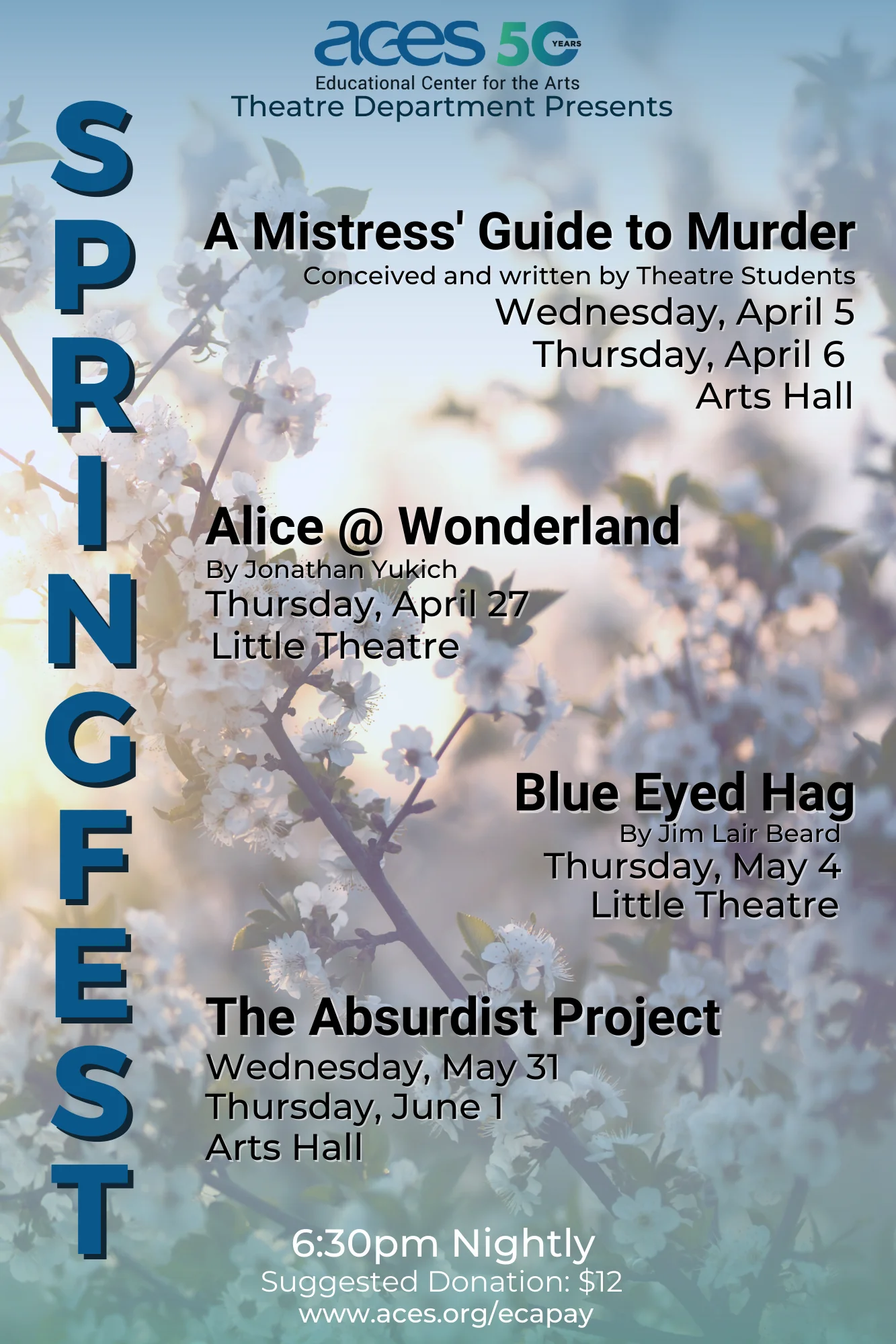 This competition is open to students in Grades 9-12 from public, independent, and parochial high schools. Students are selected by their schools in a preliminary competition for advancement to the state competition. Participants are required to perform from memory a monologue from one of Shakespeare’s plays and to recite a sonnet by Shakespeare. The ACES ECA competition had 23 student participants of which Ethan and Erian were chosen by the Theatre Department faculty to compete at the state competition held at Sacred Heart University. Ethan will compete in the English Speaking Union National Competition on Monday, April 29 held at Lincoln Center in NYC. The first place winner of the National Competition will win a three-week summer program at the British American Drama Academy in England. The second place winner will be awarded a summer program at the American Shakespeare Center Theatre Camp in Virginia. The third place prize is $500. All seniors in the ECA Theatre Department are enrolled in a Shakespeare Monologue and Sonnet class with instructor Carolyn Ladd. After the ECA competition is held, the first and second place winners, this year Ethan and Erian, are coached by Chair of the Theatre Department, Ingrid Schaeffer and Carolyn Ladd to prepare them to go on the compete at the state competition. The ACES community congratulates both Ethan and Erian for their wonderful work and celebration of Shakespeare’s language!