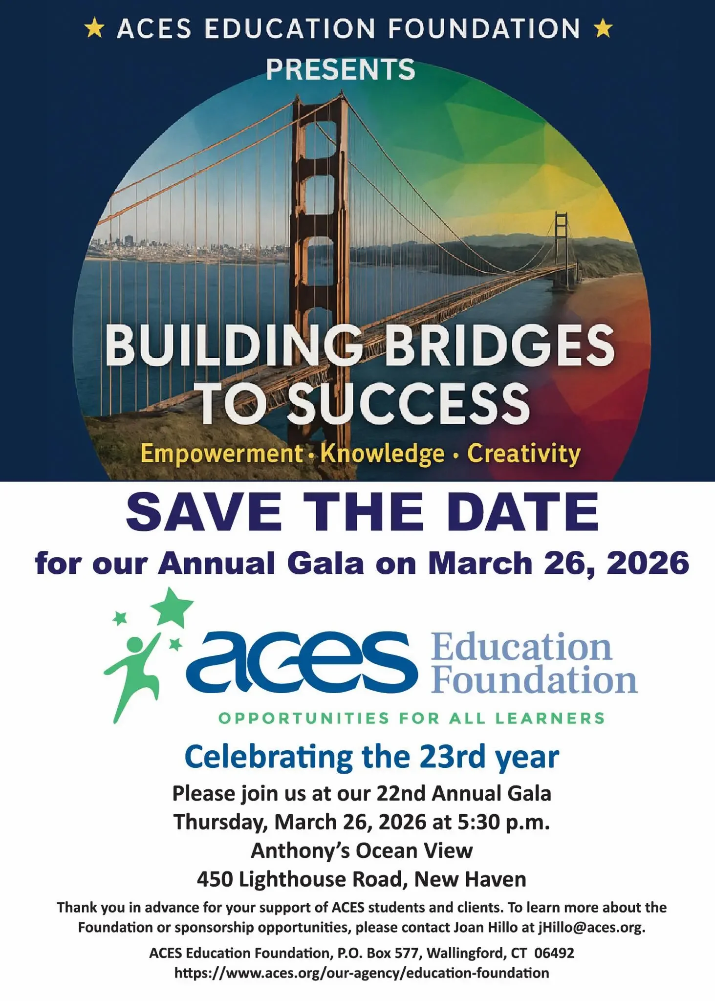 The ACES Education Foundation is a non-profit charitable organization that supports ACES programs and services. As an agency, ACES perceived the need to better engage members of the community with our vision and goals and to provide a means to support small, worthy, but unfunded ACES projects as they arise. To meet this need, we established the Foundation in 2003. The ACES Education Foundation raises funds from individuals and businesses, including staff, alumni, vendors, and other ACES friends. These funds are then used to enhance and support various agency programs.