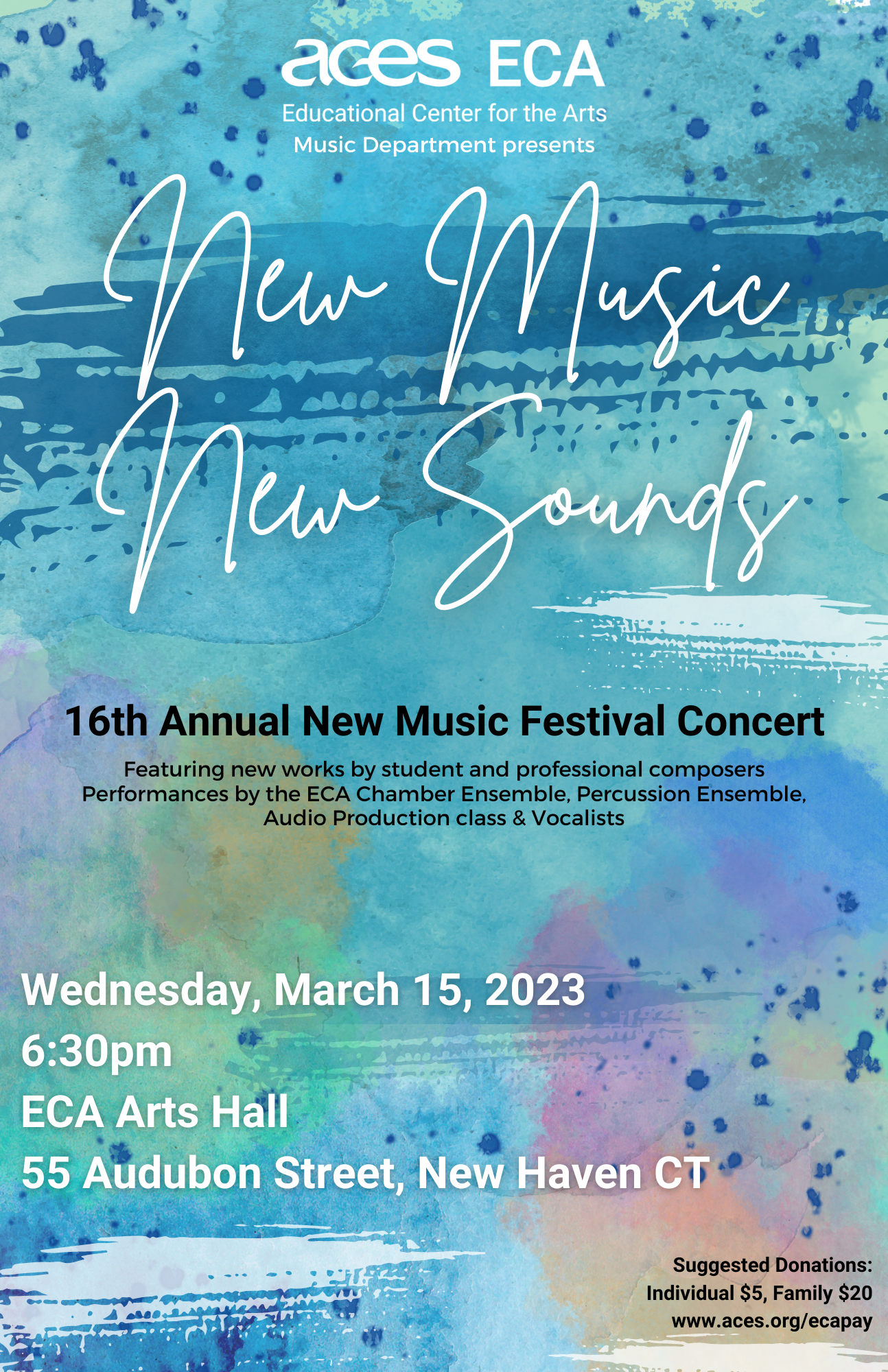 The ECA Music Department curriculum places a heavy emphasis on the development of student voice and musical skill through composition. All music students can enroll in one of four full-year composition courses, including Techniques in Composition, Jazz Composition & Arranging, & Audio Production (iMac computer lab w/Logic Pro, Finale, Garage Band, & Audacity.) In these courses, students explore musical and conceptual structures, and learn how to manipulate parameters to create engaging musical ideas. Students create, notate, revise, workshop, rehearse, and ultimately share their original works in performance. Many students compose for ECA student ensembles, as well as visiting professional ensembles. The process of writing, producing, rehearsing, and performing original compositions allows students to solidify understanding of musical concepts, generate questions that fuel continued learning, and develop a deeper understanding of the creative process. Student works are premiered at department recitals throughout the year, as well as in our New Music Festival each spring. Founded in 2007, the ECA Music Department Annual New Music Festival celebrates these student works, as well as the works of contemporary professional composers. Throughout the festival, ECA music students attend workshops and lectures by visiting composers and guest artists, and participate in the study and performance of new works, some of which are commissioned specifically for ECA ensembles. The festival culminates in the New Music New Sounds concert.