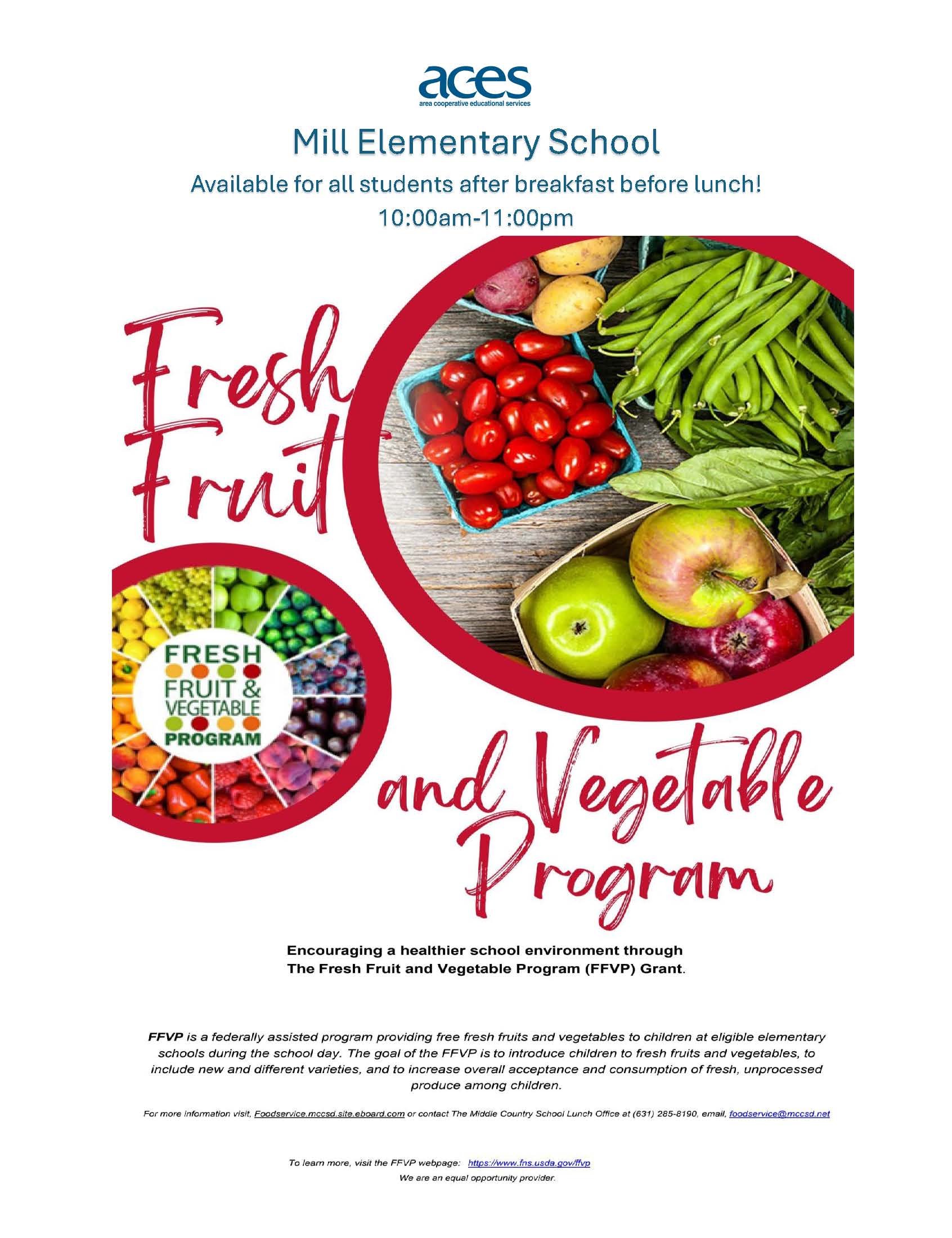 Home » Schools & Programs » Special Education Schools » Mill Road School » About Us » Breakfast and Lunch Menus » Fresh Fruit and Vegetable Program (FFVP)