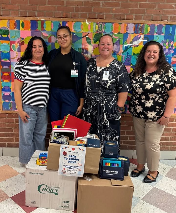 We are deeply grateful to the Montowese Center for Health and Rehabilitation for organizing a Back to School Supply Drive in support of Village School. This generous effort, coordinated with the help of Serena Cosgrove (a former Village Individual Aide who is now part of the Montowese team), provided our students and staff with essential supplies including pencils, notebooks, tissues, and more. Their generosity and partnership ensure that our students begin the school year well-prepared and supported. Pictured here are Angela Green (Village Teacher), Serena Cosgrove (Montowese), Ginny Tagliatela (Village Principal), and Rose Spinelli (Montowese).